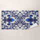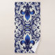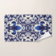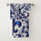 A blue and grey fleur de lis design on this beautiful neutral colour towel set.