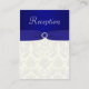 ****PLEASE NOTE that the ribbon and jewels are print images, and are not real. This blue and ivory damask reception card matches the wedding invitation and other items shown below.