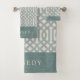 Blue and Ivory Trellis Monogram | Farmhouse Bath Towel Set