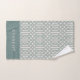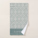 Rustic blue trellis print bath towel set personalised with your name monogram or other text. Please note that the subtle linen texture is part of the printed design and the product is not made of real linen fabric. Use the design tools to add your own text and photos to create a unique one of a kind design. The perfect touch for your modern farmhouse bathroom decor!