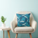 Add a fishy touch to any room with this accent pillow. This throw pillow or cushion features simple illustrations of trout fish in ivory, teal blue and navy blue set against a cool blue background.