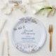 Beautiful watercolor wildflower graduation plates feature hand-painted flowers in soft tones of dusty blue and lavender with green botanical leaves. Personalise it with the year of graduation, name of graduate and the school they graduated from. You can also include what degree they received. Background is sky blue.