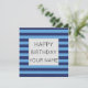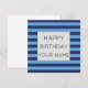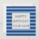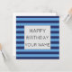 A cool light blue and light blue striped pattern and a Happy Birthday text template. Click personalise to add your name.