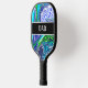 Personalised Modern pour painting marble effect blue, lime green and black abstract art pickleball paddle.
