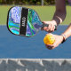 Blue and Lime Green Marble Pour Painting Effect Pickleball Paddle
