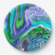Blue and green swirls abstract marble modern art fun birthday Party plates.