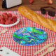 Blue and Lime Green Marble Swirls Birthday Party Paper Plate