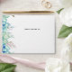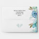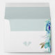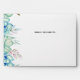 This wedding envelope has a beautiful design of watercolor flowers in shades of blue and mint green. The floral arrangement adorns one side of the envelope, creating a lovely contrast with the white background. On the back flap, you can find the return address written in a clear font while two hearts are placed on the back bottom. The inside of the envelope is of a soft blue colour that matches the flowers.