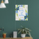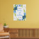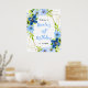 This beautiful and elegant birthday welcome sign features watercolor baby blue and navy blue flowers with foliage. The text combines handwritten script and serif fonts for a stylish and modern look. This is perfect for a spring or summer rustic birthday.