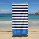 Blue and Navy Stripes Monogram Beach Towel