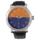 You'll enjoy this classic, stylish watch with an orange and dark blue face.