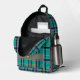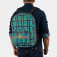 A rich turquoise base is crisscrossed by bands of deep navy blue, solid grey, and bright orange in this plaid that combines trendy colours and contrasts with a classic and cosy pattern. Customise the initial on the front pouch of this backpack with your own monogram to make this accessory uniquely yours.