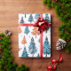 Blue and Orange Watercolor Christmas Trees Wrapping Paper