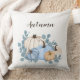 Celebrate the cosy charm of fall with this beautifully illustrated throw pillow. Featuring a soft watercolor design of pumpkins in shades of blue, white, and orange surrounded by blue-green foliage, this pillow brings seasonal elegance to any space. The word “Autumn” is gracefully scripted above the arrangement, making it a perfect accent for your living room, guest space, or entryway.