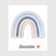 Contour sticker with a cute and whimsical rainbow. Blue and peach watercolors.