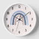 A clock with a cute and whimsical rainbow. Blue and peach watercolors.