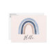 A postcard with a cute and whimsical rainbow. Blue and peach watercolors.
