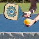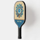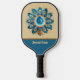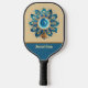Blue and Peach Retro Feathers Mandala Monogram Pickleball Paddle
