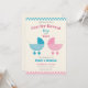 Blue and pink baby stroller gender reveal invitation