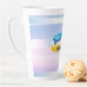 Customized latte mug in Blue Beach House design with sand bucket and beach ball.