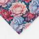 This fleece blanket features roses and peonies in soft sky blue, delicate shell pink, and dark wine red, with teal and purple foliage in the background. Beautiful and luxurious with a vintage country look that’s still very modern.