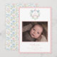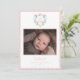 This sweet baby announcement is a perfect way to announce the arrival of your new baby. The design features a monogram crest with a blue ribbon woven through. Introduce your baby with the details of your new baby's special day and a newborn photo. The back side has a coordinating floral pattern.