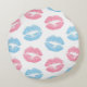 Blue and Pink Lips Pattern, Lipstick, Kiss Round Cushion