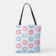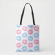 Blue and Pink Lips Pattern, Lipstick, Kiss Tote Bag