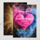 A smoke heart themed Baby Gender Reveal party invitation template. On a black background, a pink love heart is surrounded by vibrant blue and pink smoke, and gold glitter. Personalize by editing the digital or printed invitation with your event details.