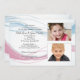 Abstract waves in blue and pink against a white background and two photo windows, make a perfect invitation for twin's First Holy Communion. The featured cross can be dragged to any location, made larger or smaller (+-) or eliminated.