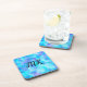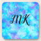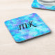 Monogrammed Blue and purple bokeh bubbles coaster.