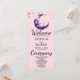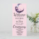 Introducing our Celestial Blush Wedding Program, a delightful blend of romance and enchantment that will add a touch of celestial magic to your wedding day. The program features a soft pink background, reminiscent of a picturesque sunset, serving as the perfect canvas for a captivating blue and purple crescent moon. Adorned with whimsical blue and purple clouds, the moon is embellished with a celestial dance of yellow, gold, and rose gold stars, creating a truly mesmerising and otherworldly atmosphere.