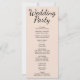 The text within the program is elegantly presented in a classic combination of black and grey, primarily using a simple block font for clarity and readability. To infuse an element of grace and charm, key phrases such as "Welcome," "Ceremony," and "Wedding Party" are delicately rendered in a pretty decorative script font. These scripted elements add a touch of sophistication and romance to the design, creating a harmonious balance between modernity and timeless charm.