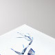 The artwork features a strikingly beautiful deer depicted in a low-poly, geometric style, created entirely out of triangles, with a colour gradient ranging from blue to purple. The deer is captured in a moment of stillness, standing tall with its head and gaze directed forward, seemingly lost in thought. The use of a gradient in the colour palette creates a sense of depth and dimensionality, adding a dreamlike quality to the artwork. Despite the stylised, angular design, the deer's form and features remain recognisable, with pointed ears, a slender body, and elegant antlers. The overall effect of this artistic piece is both mesmerising and enchanting, drawing the viewer in with its captivating combination of geometric shapes, rich colours, and natural imagery.