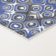 This bold mandala design features concentric circles of geometric shapes in shades of cobalt blue, deep purple, charcoal grey, and crisp white. The repeating square and oval forms radiate outward, creating a sense of movement and rhythm reminiscent of wheels in motion. With its modern colour palette and striking symmetry, the design captures both balance and energy, making it perfect for those who enjoy bold geometric motifs with a contemporary edge.