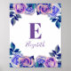 Blue and purple roses. Baby girl monogram. Nursery Poster