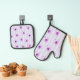 blue and purple striped daisy pattern oven mitt & pot holder set