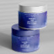 A waterproof label for cosmetics and/or soap products with a watercolor blue and purple background and white text. Customise it with your business and product information.