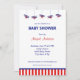 Blue and Red Aeroplane Striped Baby Shower Invitation.