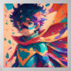 Blue and red superhero anime kid with cape wall art.