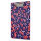 This design features a hand-drawn illustration of beautiful red flowers against a navy blue background. It has a cute and quirky appearance while also remaining very elegant.