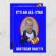 An All-Star birthday invitation for your little All-Star!! Football fans will love this fun and bright football all-star themed photo birthday invitation! Design features a bright blue background with red trim around an oval photo area on the front of the invitation to add your own photo of your little football fan birthday boy or girl. Below the photo area is a football helmet in matching colours and a football. Add your child's age or sports number to the helmet. There is text in fun white font which is completely customisable on both the front and back of the invitation. The back of the invitation keeps the same colour scheme and football theme.