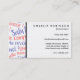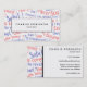 A modern design featuring beginner french phrases in red and blue on a white background. In the middle, there is a white box with a black outline for your name and profession, or a business name and tagline. This would be perfect for a french language teacher or a private tutor. On the back, the design is repeated with more space for your details.