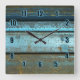 Blue and rust rugged weathered rusted metal square wall clock