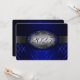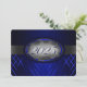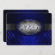 Blue and silver graduation invitation with light and dark blue stripes and a silver ribbon going across showing the year of graduation. The back of the card is blue with light silver font for people to fill in the graduation announcements.
