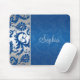 This elegant looking royal blue and silver damask mousepad has a spot for your name, monogram, or other text.