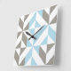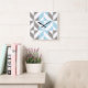 Blue and Silver Geometric ZigZag Square Wall Clock