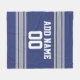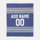 Blue and Silver Jersey Stripes Custom Name Number Fleece Blanket