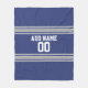 Blue and Silver Jersey Stripes Custom Name Number Fleece Blanket