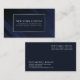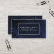 Professional business card featuring gradient blue background with silver frame on the front, and classic serif typography on both sides. This modern business card offers details for the company name, services, and address, along with your name, title, phone number and email address with classy little icons. To add more elements to the card such as logo, graphic, tagline, or more info, you can use the provided design tool to customise it further. This business card is ideal for any business or occupation. Several paper styles available, with optional rounded corners.